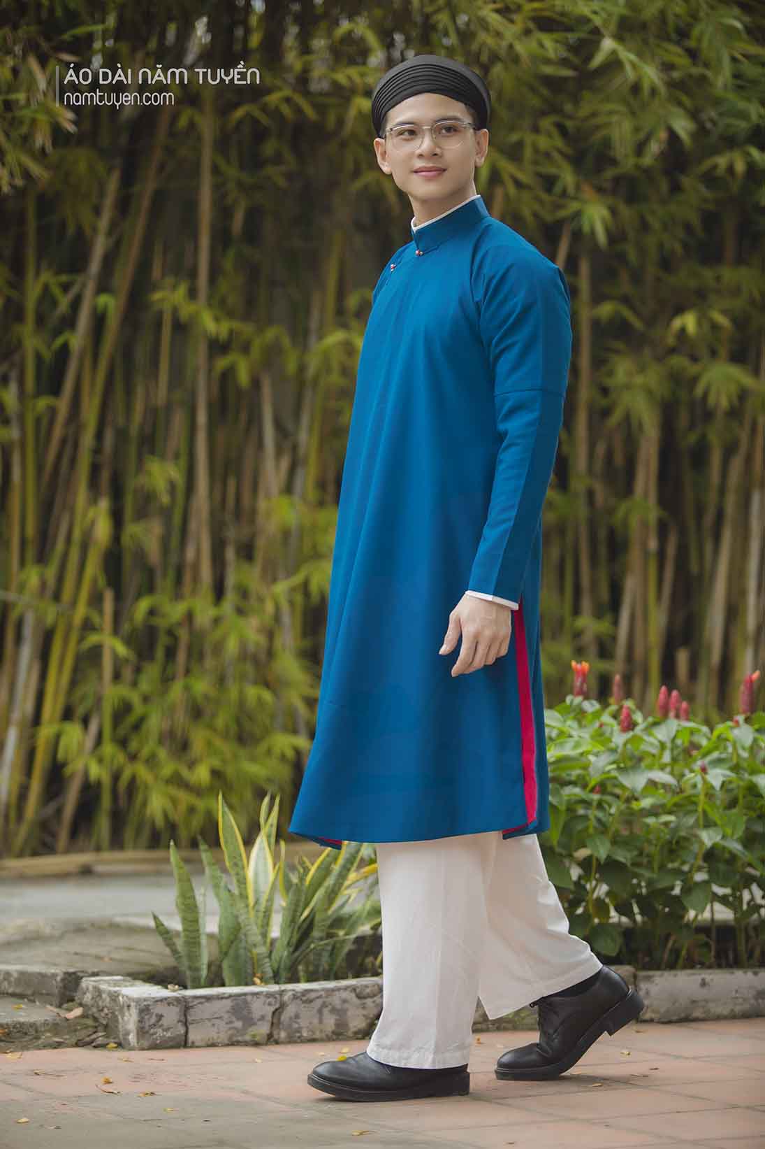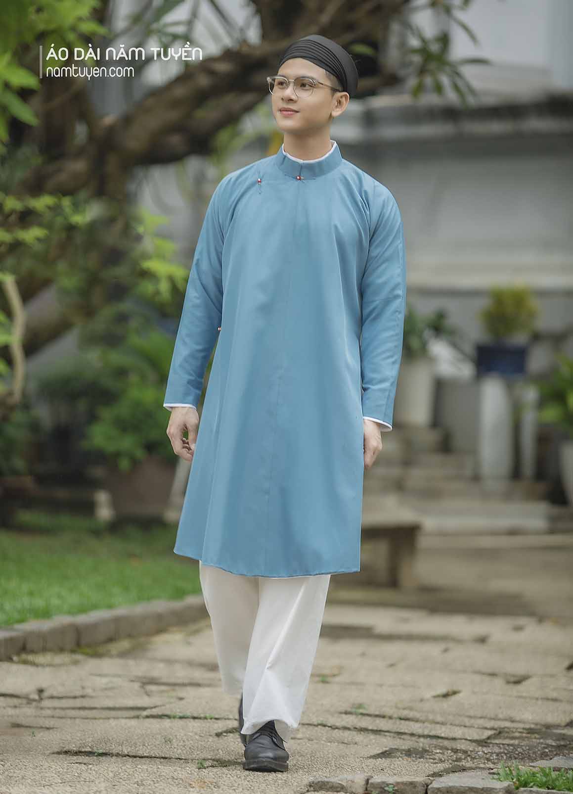 Áo Dài Ngũ Thân Nam truyền thống Màu xanh biển trẻ trung