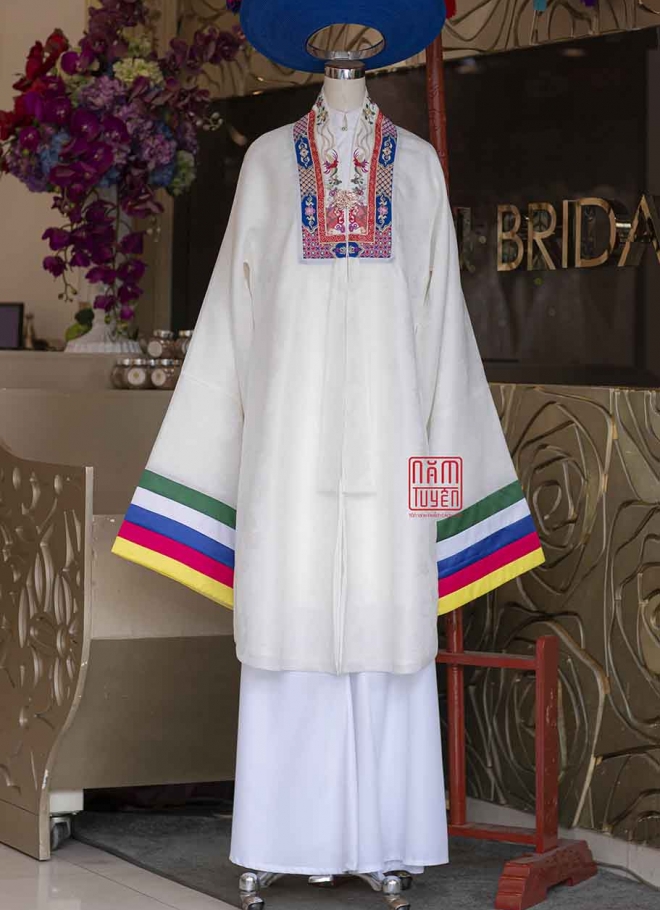 • Chú rể: Diện áo ngũ thân tay thụng hoặc tay chẽn của Năm Tuyền để tạo nên hình ảnh cặp đôi hòa hợp, mang tinh thần “phu thê tương hợp”.