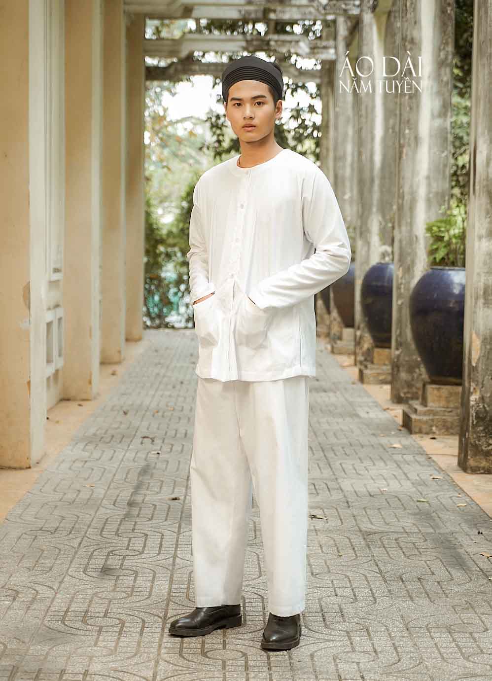 Quần lưng thun trắng nam mặc áo dài truyền thống